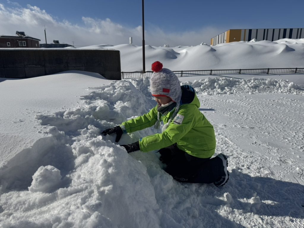 子ども達に伝えると、必死に雪の中を掘っていました😆❄️