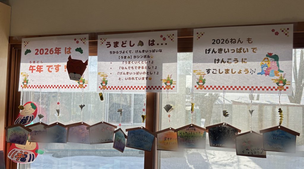 12月の工作では絵馬を作り、年明けにお願い事を書きました🐴🤍