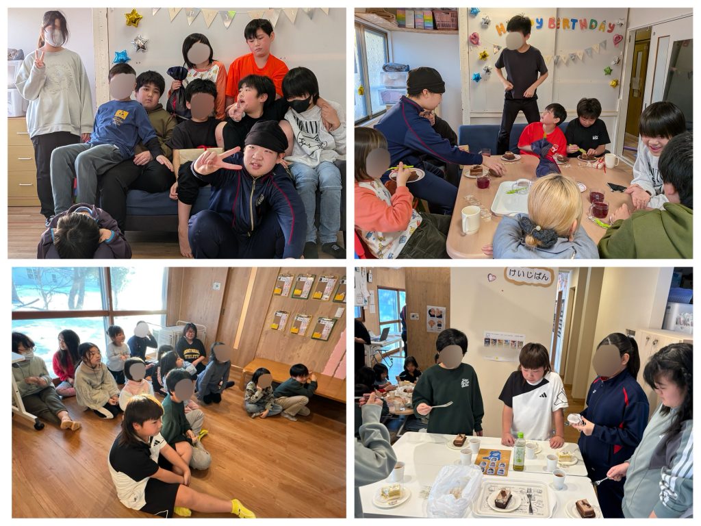 お話しながらケーキを食べて、今月のお誕生日会も楽しく過ごすことができました💮