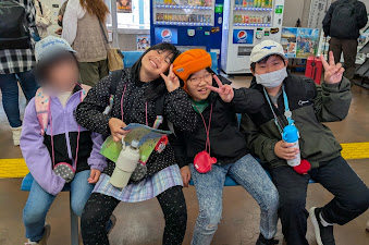 みんなでハイ!チーズ✌📷駅員さん手を振って電車に乗り込みます!