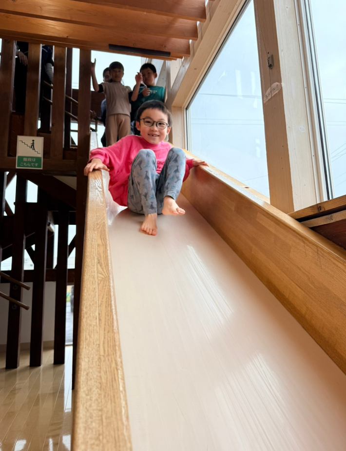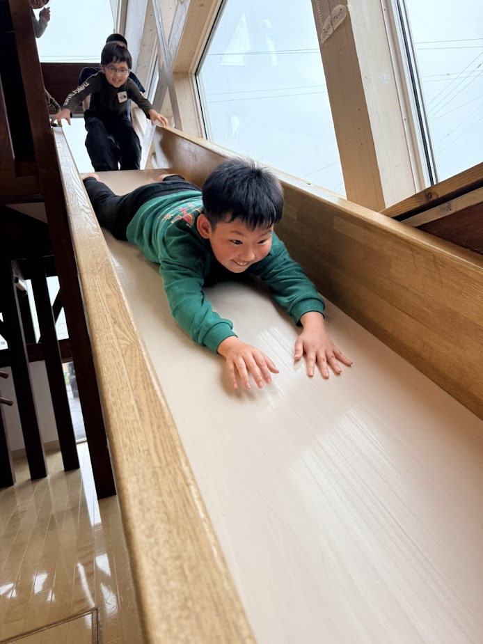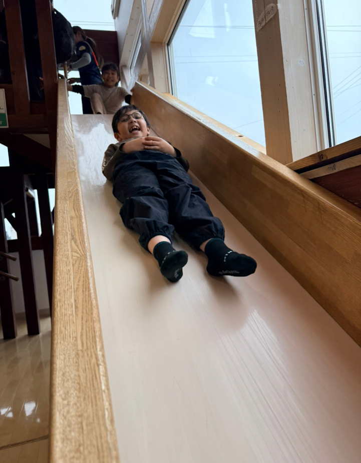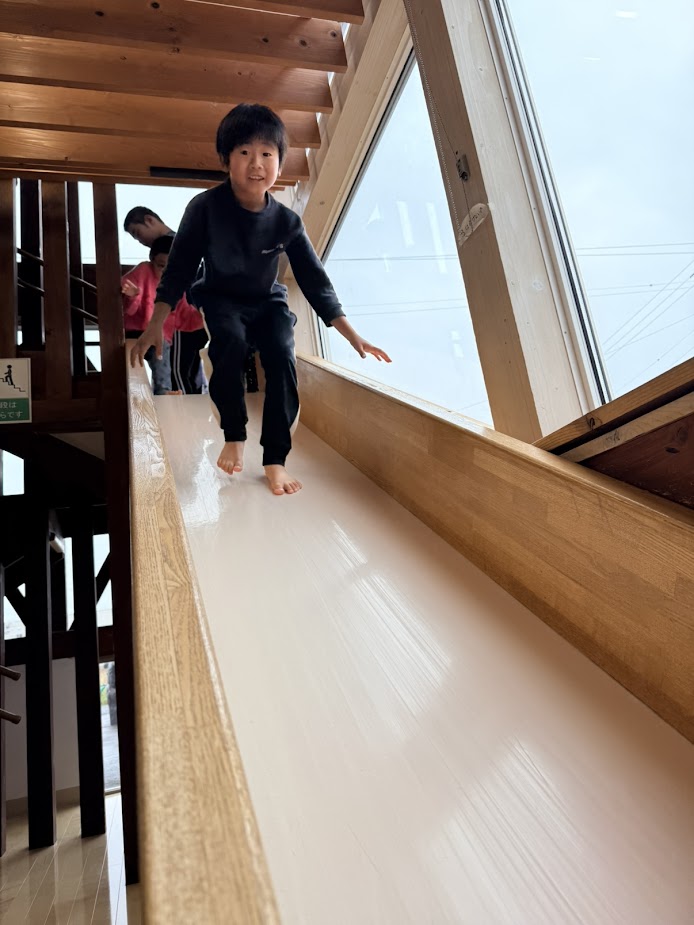 雨で公園には行けなかったですが、最後にあつまんべの滑り台で思いっきり遊びました♡