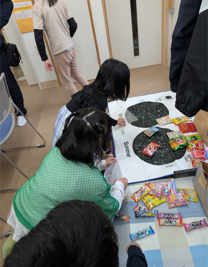 お弁当のあとはビンゴ大会!!景品はみんなが大好きなお菓子なので、カードを見る目は真剣です🍫